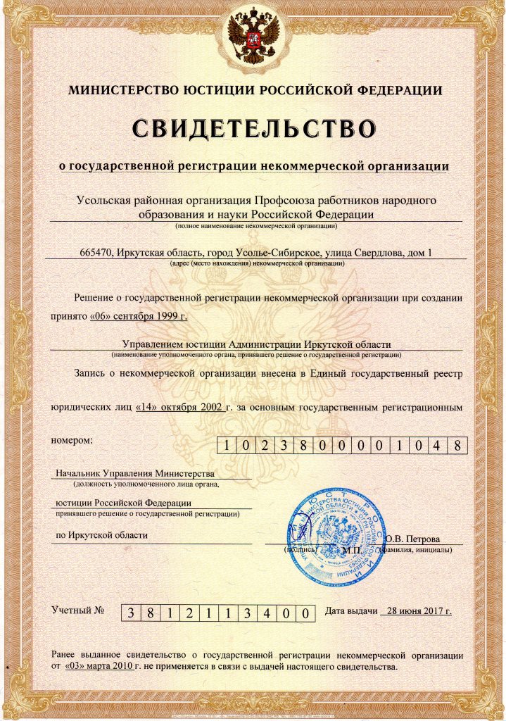 Свидетельство о регистрации некоммерческой организации (скачать)