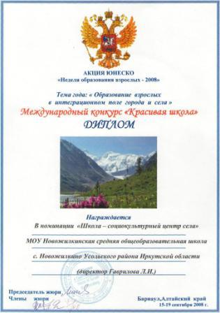 - МОУ Новожилкинская СОШ, номинация «Школа – социокультурный центр села»