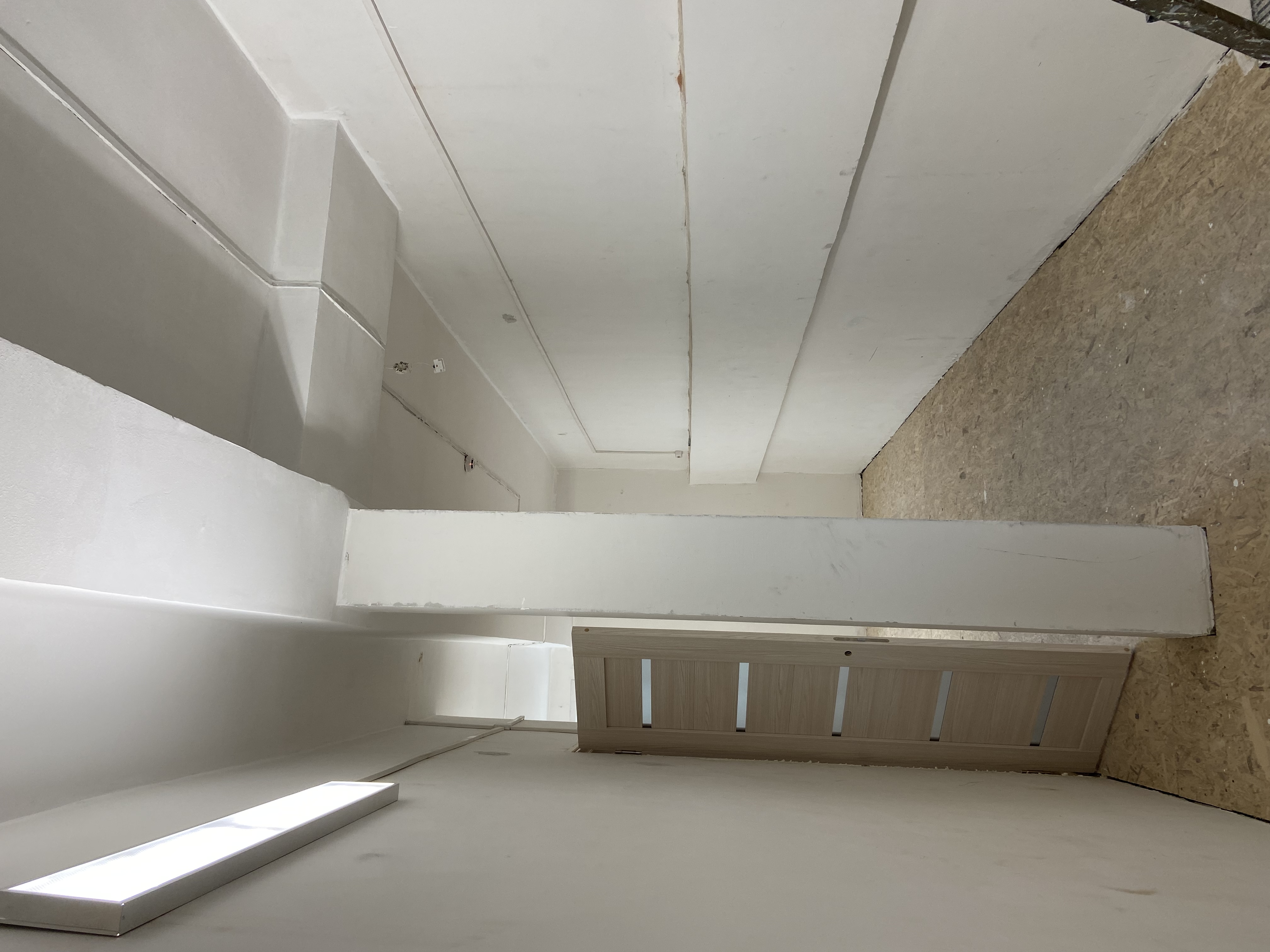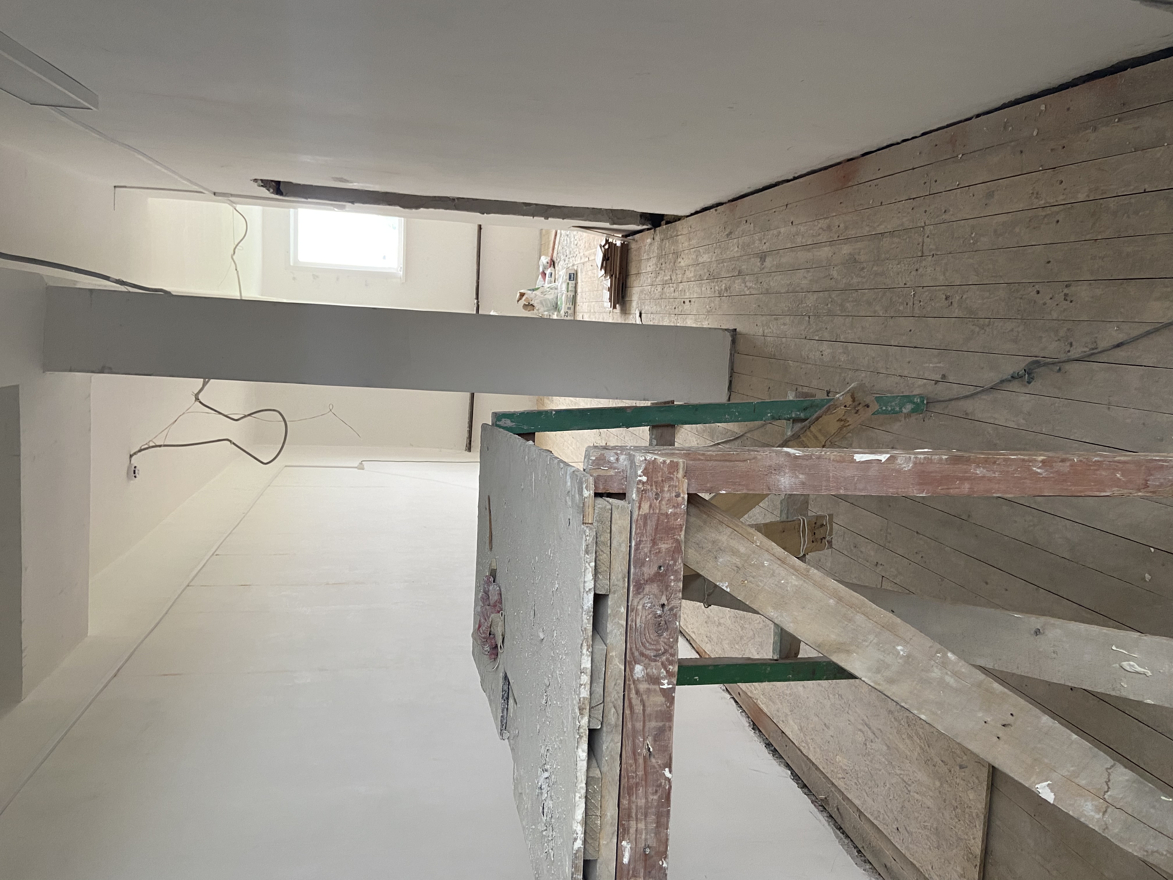 Выполнена система электроснабжения, проведена канализация, отопление. Выполнены штукатурные работы. Окрашены потолки. Закончена укладка плитки по стенам. Укладка плитки по полу выполнена на 90%. Двери вставлены на 80%. Выполнен демонтаж пола.